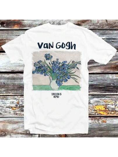 Van Gogh Irises 1890 Painting Drawing Art T Shirt Vintage Retro Cool Gift Mens Womens Unisex Cartoon Anime Top Tee B922 - White - View 1