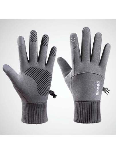 Waterproof Touch Screen Anti-slip Running Gloves For Snowy Weather, Grey - Grey - View 1