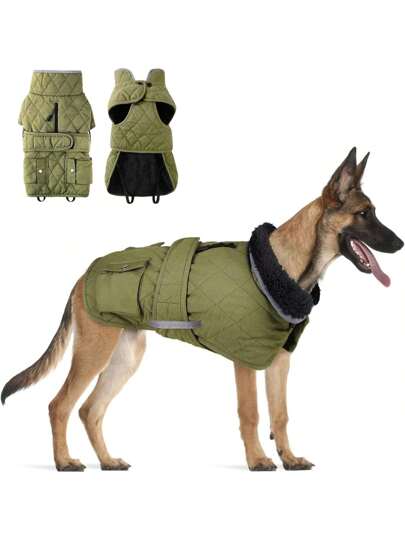 Waterproof Winter Dog Coat With Pocket And Zipper, Hunting Vest For Small, Medium And Large Dogs With Leash Ring - Army Green - View 1