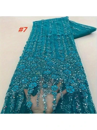 African Sequins Mesh Lace Fabric 2025 High Quality Embroidery Beaded Nigerian French Tulle Lace Material For Wedding Dress Sewing - Multicolor - View 11