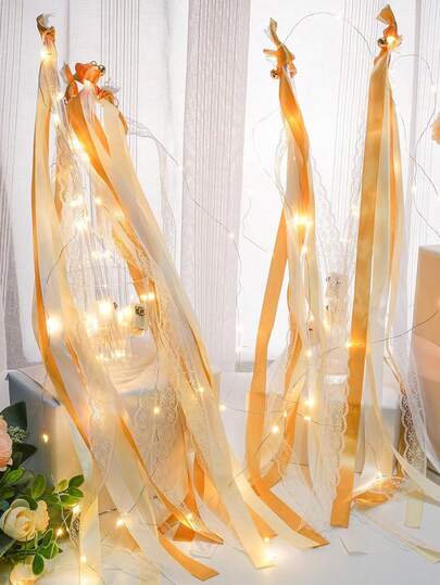 Wedding Wands Ribbon Streamers With Bells LED Fairy Light Up Silk Fairy Wand Glow In The Dark Flashing Lace Stick For Wedding Birthday Party Favors - Champagne - View 6