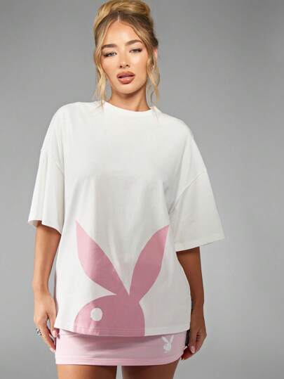 Missguided x Playboy Oversized Bunny Logo Print Cotton T-Shirt Lounge Wear Summer Leisure Wear Spring Fashion Unlined Athletic Casual - White - View 1