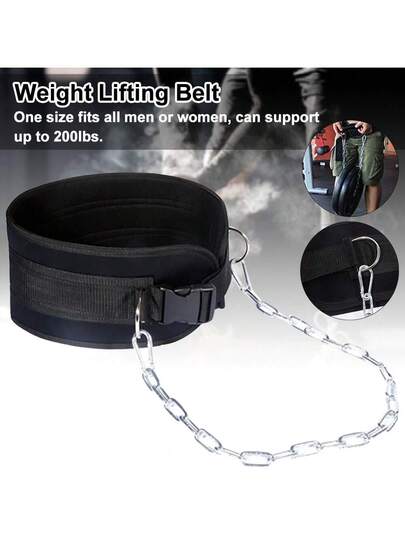 Weight Lifting Belt Pull Up Buckle With Chain  Accessories Gym Fitness Equipment - Black - View 1
