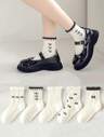 5 Pairs Cute Socks, With Small Bear Pattern On Leg, Made Of Warm And Thick Cashmere Material, Suitable For Winter Wear, Solid Color And Comfortable