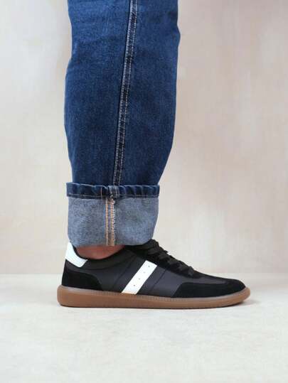 Where’s That From Pace Contrast Panel Lace Up Gum Sole Trainers In Faux Leather - Black - View 1
