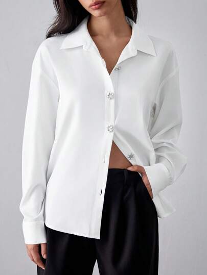 Chiquease White Woven Shirt With Pearl Button Decor - White - View 1