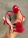 Women's Elegant High Heels Sandals With Floral Decoration, Peep Toe, Sparkly, Suitable For Party, Outdoor, Fashion, Chunky Heel, Pink