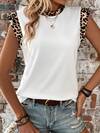 Vintage Linen Blend Short Sleeve Top For Women, Lace Patchwork Round Neck Loose Fit Breathable Linen Blend T-Shirt, Summer White