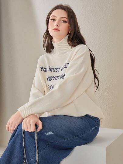 Mulvari Women'S High Neck Drop Shoulder Sweater - White - View 1