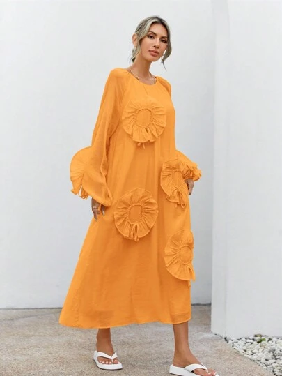 Aveloria Women's 3d Design Long Sleeve Dress - Orange - View 1