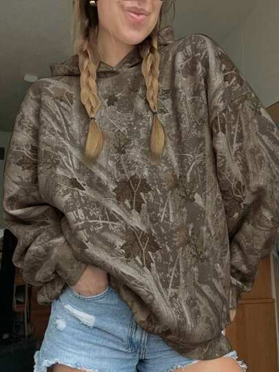 INAWLY Women's Autumn/Winter Branch Pattern Drop Shoulder Long Sleeve Casual Hoodie Pullover Fall Sweatshirt - Multicolor - View 1