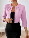 SHEIN Essnce Women's Solid Color Pleated 3/4 Sleeve Open Front Elegant Jacket, Autumn,Fall