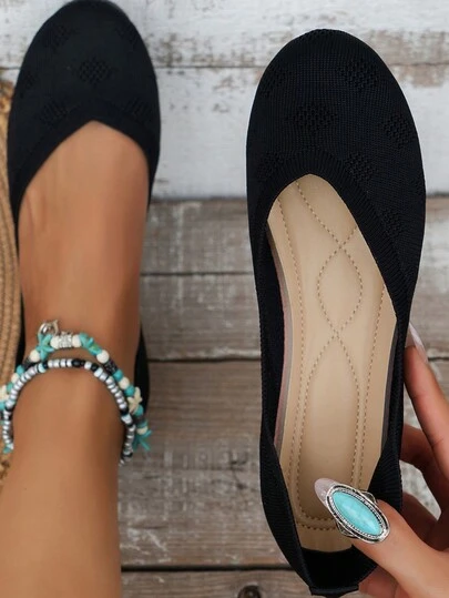 Women's Black Ballet Flats, Pointed Toe Shoe - Black - View 1