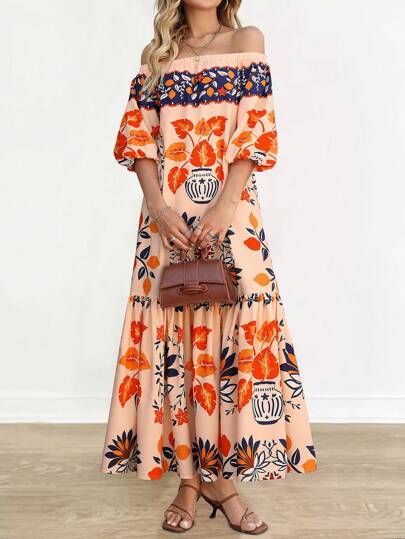 Breezaya Women's Bohemian Style Off Shoulder Dress - Multicolor - View 1