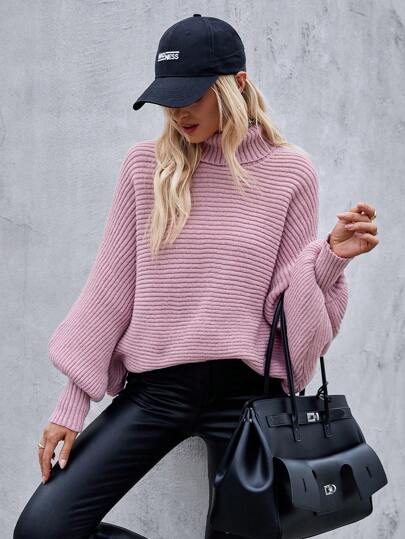 Chiquease Women's Fall Winter Solid Turtleneck Oversized Batwing Sweater Knit Pullover - Purple - View 1