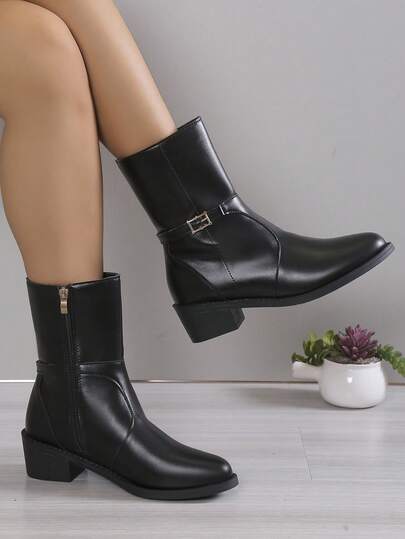 Women's Fashionable Plus Size Boots - Black - View 1