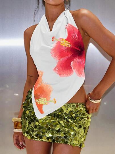 Women's Floral Print White Racerback Tank Top - White - View 1
