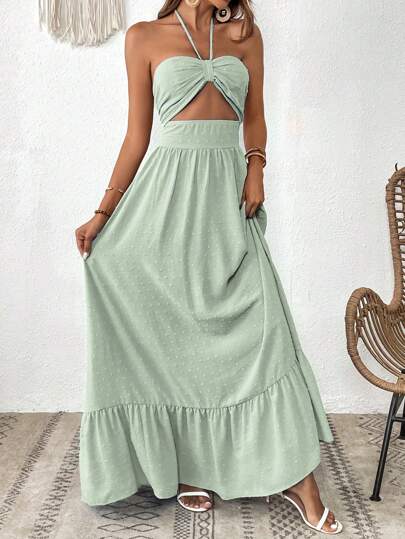 SHEIN VCAY Women's Halter Neckline Ruffle Hem Dress - Mint Green - View 1
