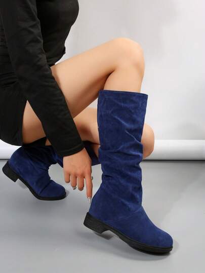 Women's Hidden Wedge Over-The-Knee Boots, Black Slip-On Casual/Travel/Daily Wear Tall Boots - Blue - View 1