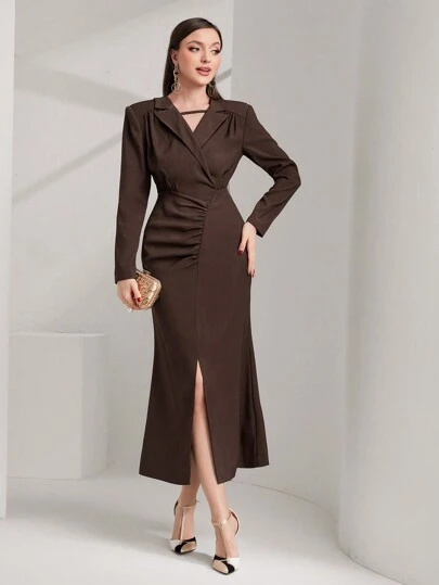Modelyn Women's Pleated Slit Dress - Coffee Brown - View 1