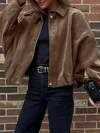 Juhart Plus Size Solid Color Zip-Up Casual Versatile Long Sleeve Jacket Fall Winter Cloth For Women Autumn