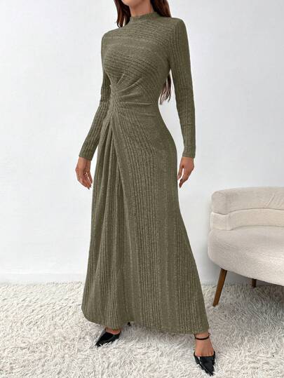 SHEIN Privé Women's Ribbed Twisted Knot Dress - Green - View 1
