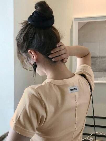 DAZY Women's Solid Color Slim Fit Round Neck Short Sleeve White T-Shirt, Spring/Summer - Apricot - View 4