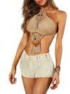 Maija Women's Contrast Color Hollow Out Knit Beach Pants, Summer Micro Short Yacht Outfit Women Capri Women's Summer Clothes Beach Outfit For Women Women's Holiday Clothes Summer Beach Outfit For Women