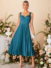 Women's Formal Long Blue Evening Dress, Elegant V-Neck Single Sleeve Asymmetric Slit Maxi Dress, Suitable For Celebration, Date, Party, Wedding, Bridesmaid, Graduation, Wedding Guest, Autumn Fashion, Back To School Essential, Valentine's Day