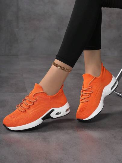 Women Knit Mesh Lace-Up Casual Sneakers For Daily Wear - Burnt Orange - View 1