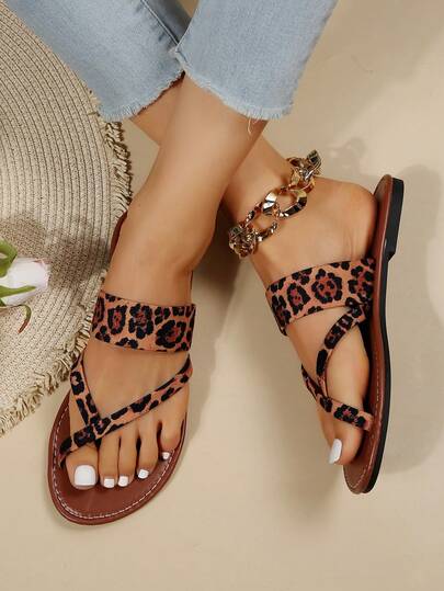 Women Leopard Pattern Thong Sandals, Fashion Sandals - Brown - View 1