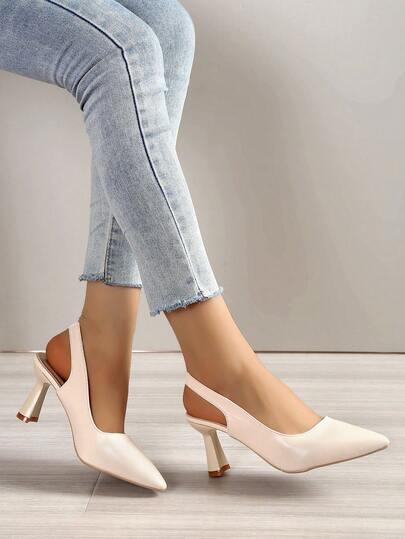 Women Minimalist Point Toe Slingback Pumps, Elegant Beige Pumps - Beige - View 1