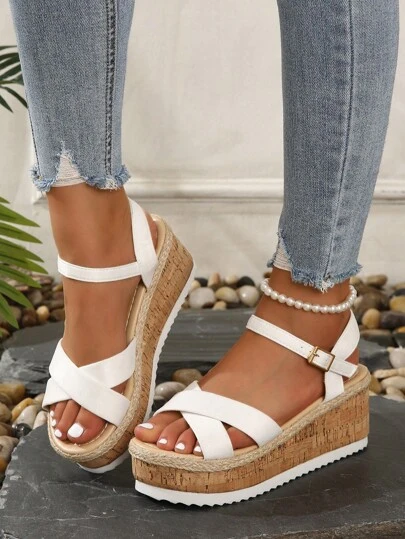 Women Minimalist Ankle Strap Wedge Sandals, Fashion Summer Sandals - White - View 1