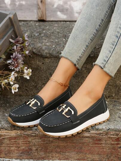 Women'S Comfortable Slip-On Rocker Sole Shoes With Thick & Soft Sole, Black - Black - View 1