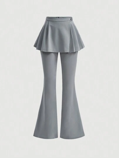 SHEIN X MariajoseGi SHEIN MOD Women'S Flared Skirt Pants - Grey - View 1