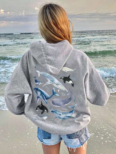 INAWLY Women'S Shark Printed Hoodie,Long Sleeve Tops Pullover Fall Outfit - Grey - View 1