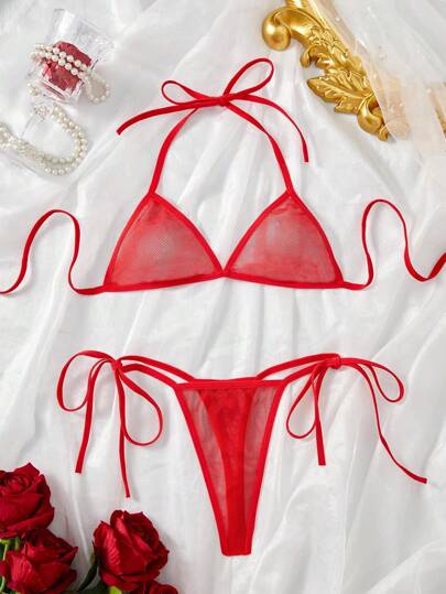 Women Sexy See-Through Mesh Lingerie Set - Red - View 6