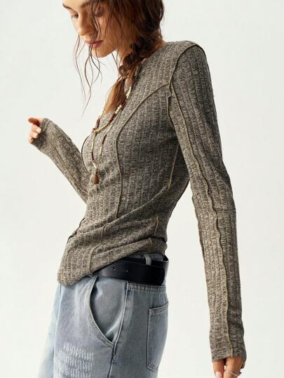 Bohemela Women Slim Fit Knitted Long Sleeve T-Shirt For Vacation - Army Green - View 8