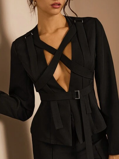 Glamine Women Solid Color Long Sleeve Top And Long Pants Suit, Two Pieces Set - Black - View 1