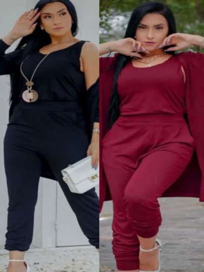 Women Two-piece Outfits - black and wine - View 1