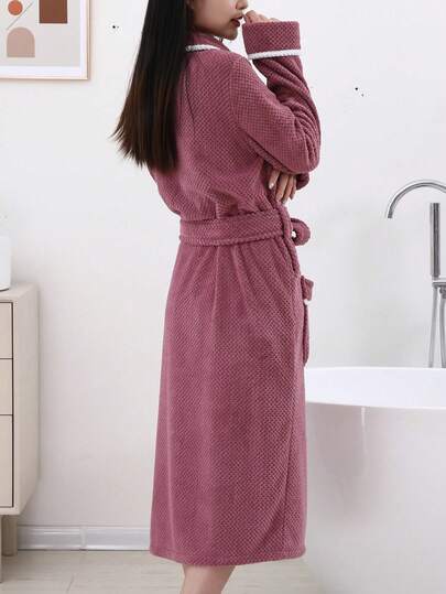 Women's Cartoon Cute Bear Printed Long Sleeve Robe / Pajamas Set, Comfortable Home Wear For Spring & Autumn Back To School - Dark Purple Edging - View 4