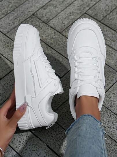 Women's Comfortable Lightweight Slip-Resistant And Durable Solid Color Casual Sports Shoes For Spring And Summer - White - View 1