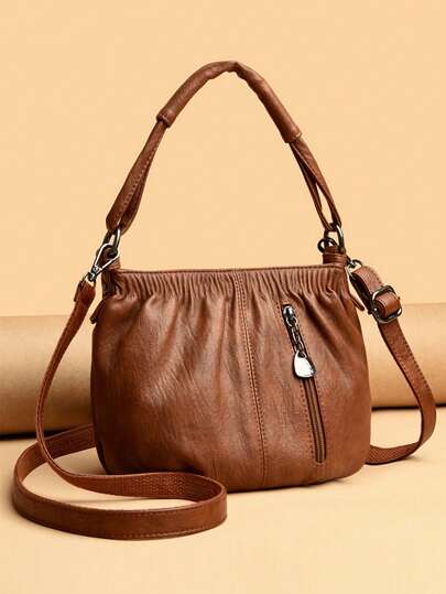 Women's Fashion Soft Leather Small Barrel Bag Handbag Shoulder Bag - Brown - View 1