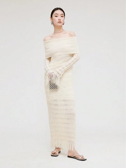 Women's High-End Unique Knitted Fitted Skirt - Apricot - View 1