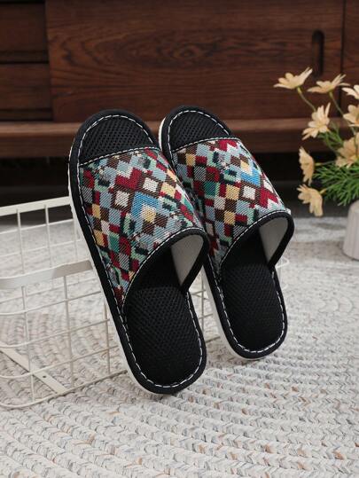 Women's Lightweight, Breathable, Linen, Comfortable Indoor Slippers, White, Suitable For Bedroom - Blue - View 1