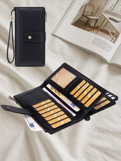 Large Capacity Wallet Slim RFID Blocking Durable Casual Purse-Black - Black - View 1