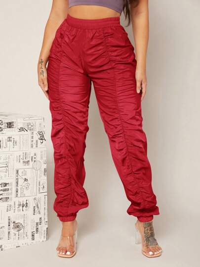 SHEIN SXY Women's Pleated Cuffed Pants - Red - View 1