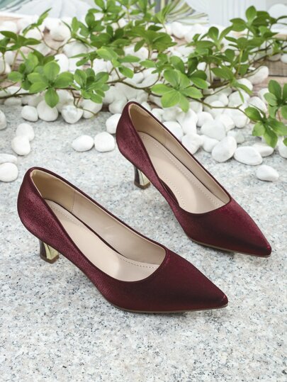 Women's Pointed Toe Pyramid Heel Shoes - Burgundy - View 1