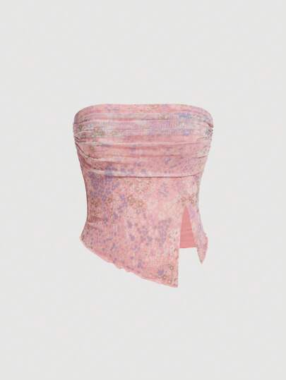 SHEIN MOD Women's Ruched Strapless Floral Top - Multicolor - View 1