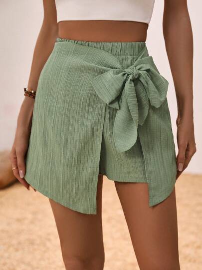 SHEIN Clasi Women's Side Tie Skorts - Army Green - View 1
